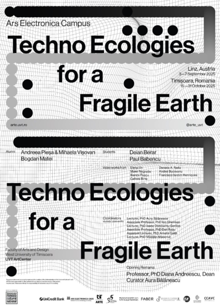 𝐓𝐞𝐜𝐡𝐧𝐨-𝐄𝐜𝐨𝐥𝐨𝐠𝐢𝐞𝐬 𝐟𝐨𝐫 𝐚 𝐅𝐫𝐚𝐠𝐢𝐥𝐞 𝐄𝐚𝐫𝐭𝐡 Facultatea de Arte si Design – UVT duce arta românească la 𝑻𝒆𝒄𝒉𝒏𝒐-𝑬𝒄𝒐𝒍𝒐𝒈𝒊𝒆𝒔 𝒇𝒐𝒓 𝒂 𝑭𝒓𝒂𝒈𝒊𝒍𝒆 𝑬𝒂𝒓𝒕𝒉 (Linz, 3–7 septembrie)! Inspirată de tema festivalului “Panic Yes/No”, expoziția explorează relația fragilă dintre oameni, tehnologie și mediu prin instalații, film și artă experimentală. 🔹 Reciclare ca rezistență colectivă 🔹 Demascarea iluziilor digitale 🔹…